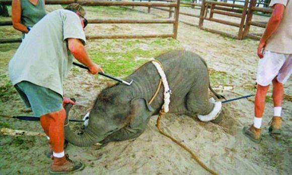 Under Phajaan blir elefanten bakbundet, sperret inne og slått om og om igjen. De kan også bli nektet søvn og veske. Til slutt er de så livredde for å bli slått at mennesket kan får dem til å gjøre nesten hva som helst, selv elefantridning.